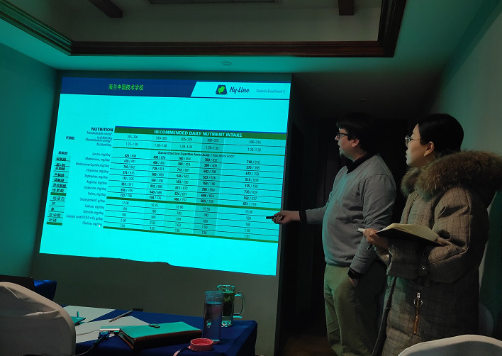 交流會上、Vitor Arantes先生對“海蘭蛋雞各階段營養(yǎng)需求”及“如何提高飼料轉化率”等方面進行了講解匯報,同時,就飼養(yǎng)管理及技術問題進行了深入的探討交流,雙方皆獲益良多。
