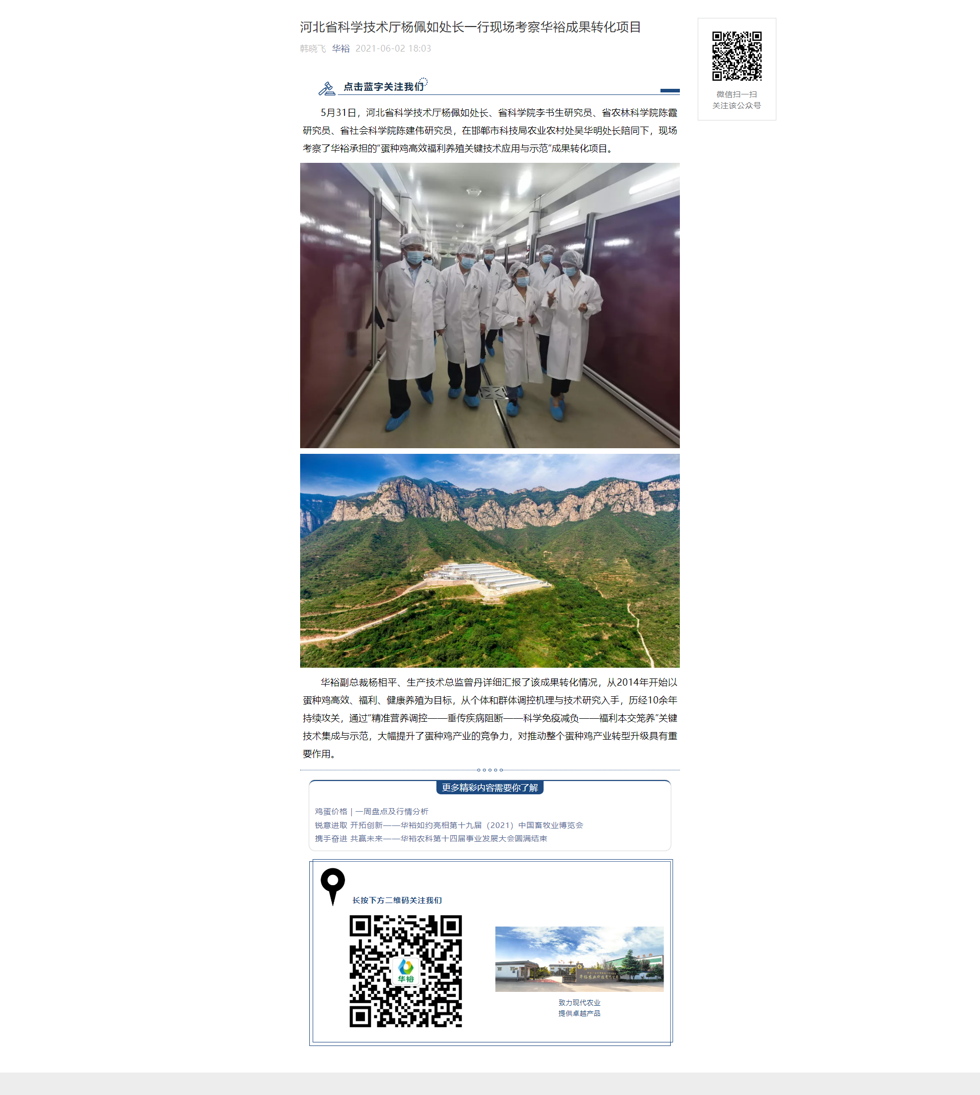 河北省科學(xué)技術(shù)廳楊佩如處長(zhǎng)一行現(xiàn)場(chǎng)考察華裕成果轉(zhuǎn)化項(xiàng)目
