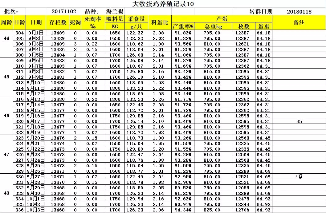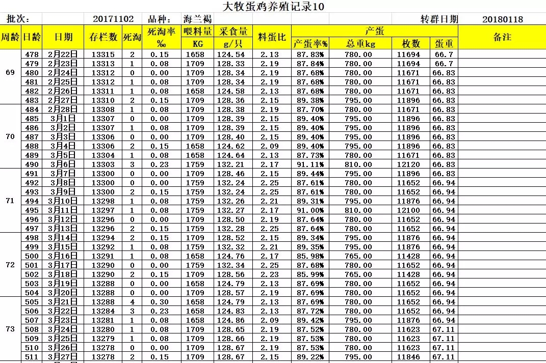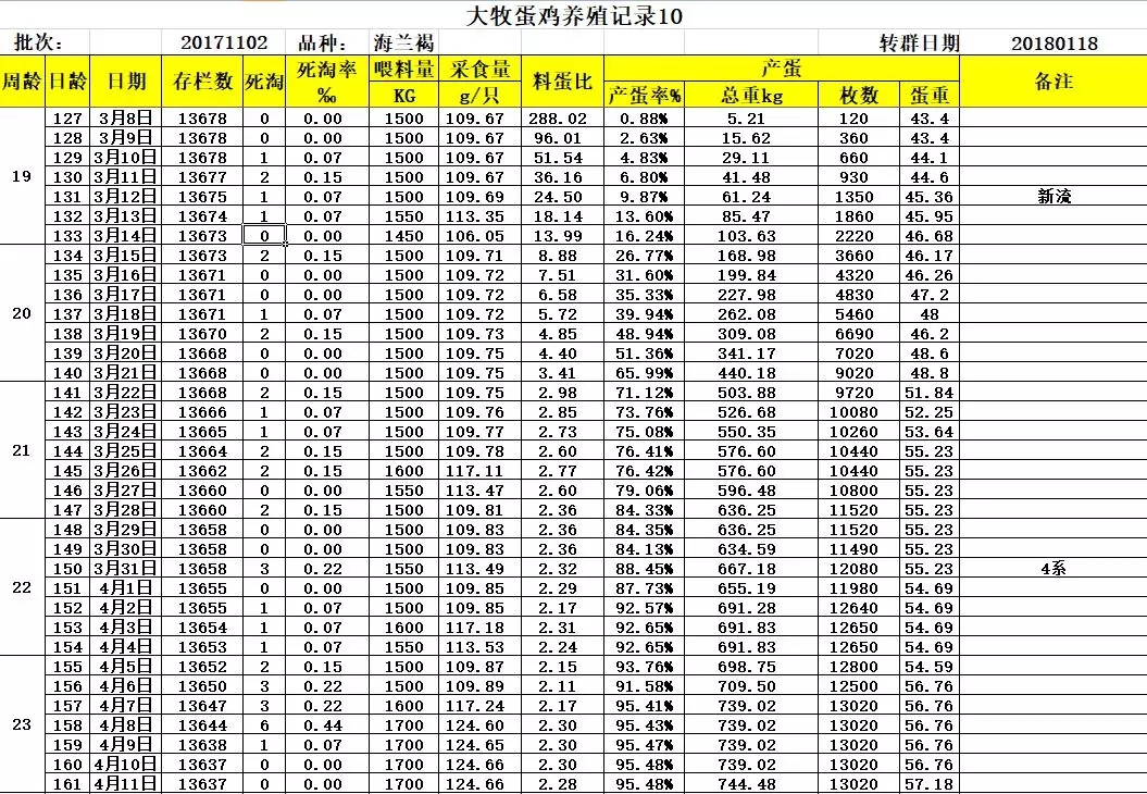 三、大牧飼養(yǎng)華裕海蘭褐詳細(xì)生產(chǎn)數(shù)據(jù)