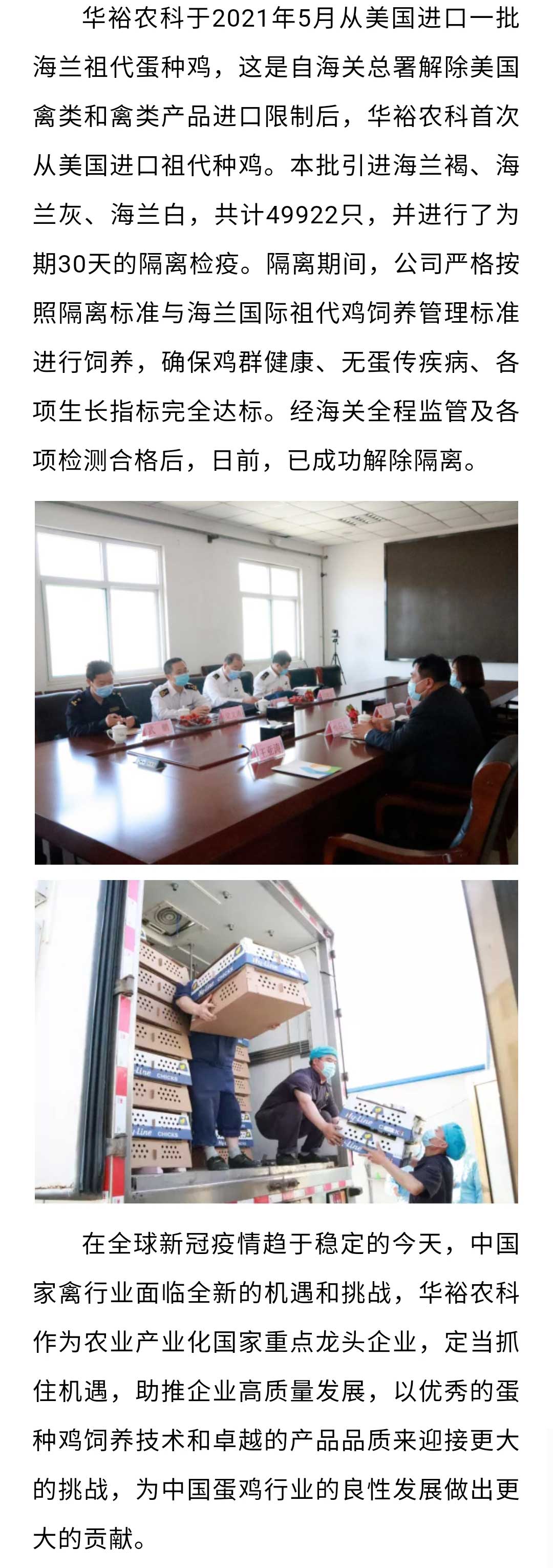 【祖代雞引進】華裕農(nóng)科成功從美國引進海蘭祖代蛋種雞