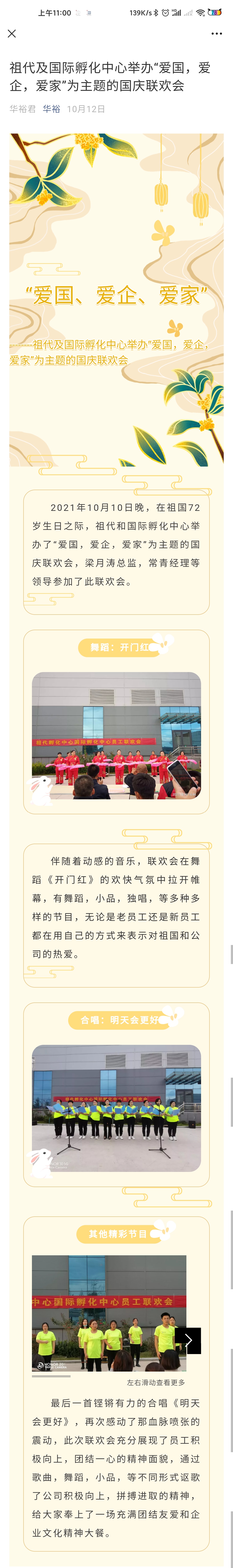 祖代及國際孵化中心舉辦“愛國,愛企,愛家”為主題的國慶聯(lián)歡會
