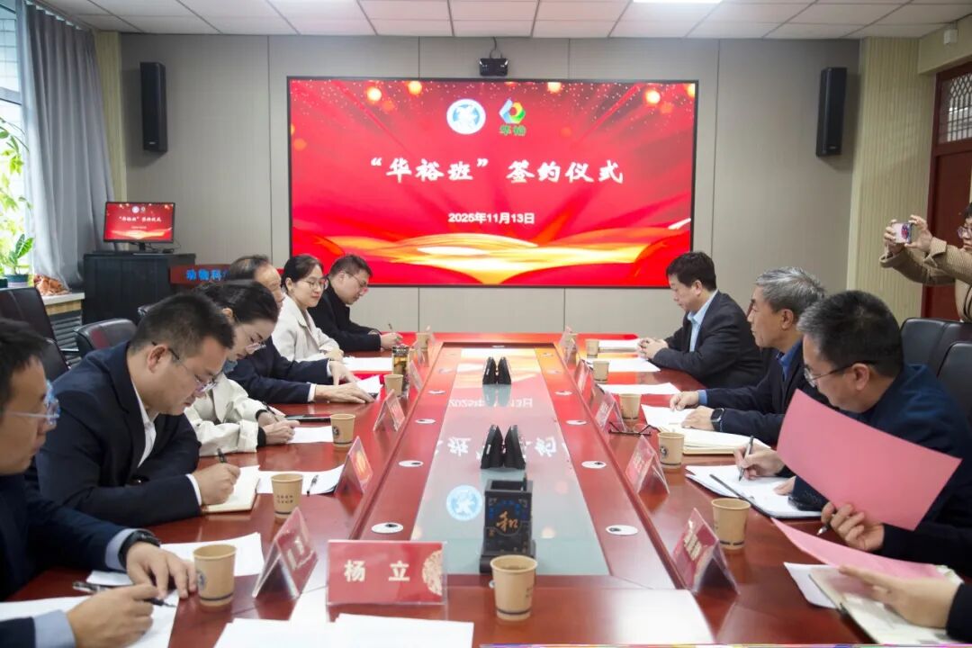 11月13日,華裕農(nóng)業(yè)科技有限公司董事長王連增一行7人,專程奔赴河北農(nóng)業(yè)大學(xué),與動物科技學(xué)院黨委書記楊彥華等學(xué)院領(lǐng)導(dǎo)齊聚一堂,共同推進(jìn)第六期“華裕班”建設(shè),為深化產(chǎn)教融合、培養(yǎng)農(nóng)業(yè)領(lǐng)域高素質(zhì)人才再添新動力。